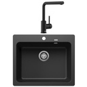 Pack vier 1 cuve / g. SONA XL 6S (Silgranit noir - L 100 cm - A encastrer - Meuble 60 cm) + mitigeur MIDA-S noir mat