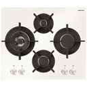 Table de cuisson gaz - Dessus verre tremp - 4 brleurs dont 1 triple couronne 3,5 kW - Allumage intgr aux manettes - Scurit gaz par thermocouple - Grilles mono-foyer fonte.