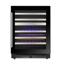 27 bouteilles-2 zones-Ventil-Clayettes bois-Encastrable-Niche H60/L60-Porte vitre-Noire