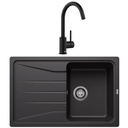 Pack vier 1 cuve / g. LEGRA 45S (Silgranit noir - L 78 cm - A encastrer - Meuble 45 cm) + mitigeur MIDA noir mat