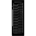 Cave � vin de service - Temp�rature r�glable de 5 � 22�C - Froid ventil� - Filtre � charbon - Gestion �lectronique des temp�ratures avec affichage LED - Syst�me anti-vibrations - Syst�me unique de clayettes sur glissi�res - Eclairage int�rieur LED blanche sur les c�t�s - Porte double vitrage trait� anti-UV avec entourage noir (non r�versible) - Serrure - Finition noire - Installation encastrable sous plan.