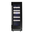 Cave vin - Encastrable sous plan - Double compartiment - Rgulation lectronique - Thermomtre lectronique affichage bleu - Compatible avec l'application Vinotag -Systme de froid : compresseur (gaz R600a) - Froid brass - 2 filtres charbon actif - Systme anti-vibration - 10 clayettes bois semi-coulissantes - Eclairage LED blanc avec interrupteur - Design : corps noir et cadre de porte verre organique noir - 2 portes vitres rversibles avec double vitrage gris en verre tremp trait anti-UV.