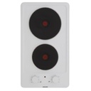 Table de cuisson domino lectrique - 2 plaques lectriques ( 18 cm 2kW + 14,5 cm 1,5 kW) - 6 niveaux de puissance - Tmoin lumineux de fonctionnement - Commandes frontales - Joint d'tanchit fourni - Finition inox.