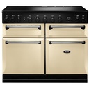 Piano de cuisson Masterchef Deluxe 110 induction - Largeur 110 cm - Four droit 79 L � chaleur tournante (label A) : 1 mode de cuisson - Parois catalytiques - 2 grilles t�lescopiques - Eclairage - Four gauche 79 L Multifonction (label A) : 8 modes de cuisson dont Rapide - Programmateur �lectronique - Parois catalytiques - 2 grilles t�lescopiques - Sonde � viande - Eclairage - Four gril Deluxe s�par� 21 L double circuit avec plateau coulissant et grille 4 positions - Fonctions D�cong�lation, R�chauffage ou gril - Four � cuisson lente 20 L pour le mijotage ou le r�chauffage des plats. Table de cuisson induction 5 zones dont une zone brigeable : deux zones de cuisson ou une large zone sur laquelle peut �tre utilis�e la plancha sp�ciale induction fournie - 3 pr�r�glages Basses temp�ratures, Haute Puissance - D�tection de r�cipients - Voyant de chaleur r�siduelle - Commandes par manette - Coloris Dartmouth Blue + finition chrome.