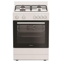 Cuisini�re mixte - Four �lectrique - 6 modes de cuisson dont TurboGril - Minuteur digital - Allumage de la table int�gr� aux manettes - 1 plaque et 3 br�leurs dont 1 rapide 2,9 kW - S�curit� gaz par thermocouple - Grilles �maill�es - Rangement avec porte abattante - Finition blanc avec manettes silver et poign�e inox.