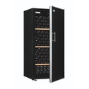 Cave � vin de service - Froid statique - Temp�rature r�glable de 7 � 18�C - Eclairage LED - 8 clayettes en m�tal chrom� - Commande m�canique interne - Porte verre trait�e anti-UV - Poign�e int�gr�e - Finition noire.