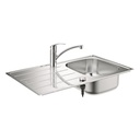 Pack vier + mitigeur - Evier encastrer K400 composite ''Grohe Zero'' (rfrence 31641AP0) : Composite : produit laide dun procd de coule de polymrisation command par ordinateur qui donne le mme aspect et la mme finition chaque vier. Le rsultat est un vier renforc qui rsiste aux rayures, aux taches et la chaleur. La couleur de l'vier est homogne, il n'y a pas de revtement supplmentaire. Le niveau de bruit est trs faible par rapport aux viers en acier inoxydable - Pour sous-meuble 600 mm - Dimensions : 1000 x 500 mm - 1 bac : 480 x 420 x 205 mm - Installation : gouttoir gauche ou droite - Trous de perage: 2 x 35 mm - Inclus: vidage automatique, siphon, bonde, kit de montage - Finition noir graphite + Mitigeur Via (rfrence 30465000) : GROHE StarLight : chrome clatant et pens pour une meilleure longvit - GROHE SilkMov - Mousseur Easy Exchange : mousseur fente schangeant sans effort avec seulement une pice de monnaie - Bec moul pivotant sur 88 - Conduit deau spar sans plomb ni nickel - Systme de montage rapide Grohe QuickFix Plus - Certifi CradleToCradle - Finition chrom - Hauteur : 180 mm.