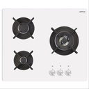 Table de cuisson domino gaz - Dessus verre tremp - 2 brleurs dont 1 rapide 3 kW - Allumage intgr aux manettes - Scurit gaz par thermocouple - Manettes argentes - Grilles fonte.